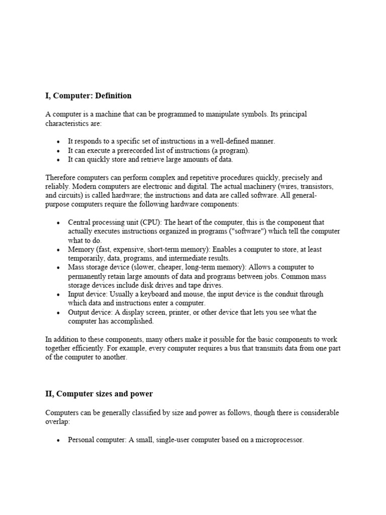 Computer Definition and Components | PDF