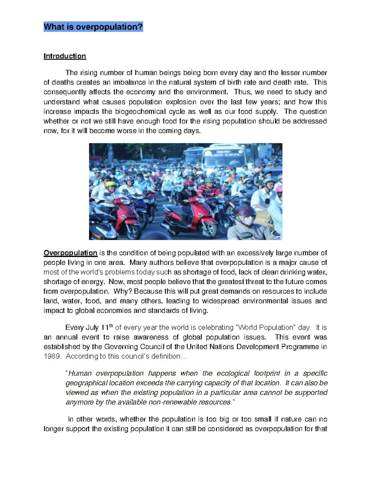 Population Explosion and Carrying Capacity - Introduction The rising ...