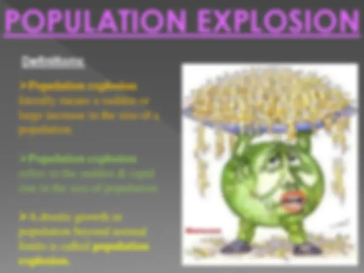 POPULATION EXPLOSION DEFINITION Population Explosion refers the sudden