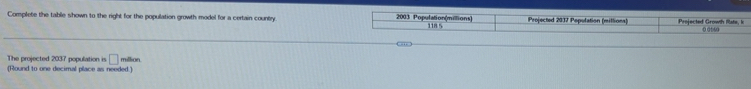 Solved: Complete the table shown to the right for the population growth ...