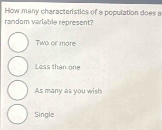 Solved: How many characteristics of a population does a random variable ...
