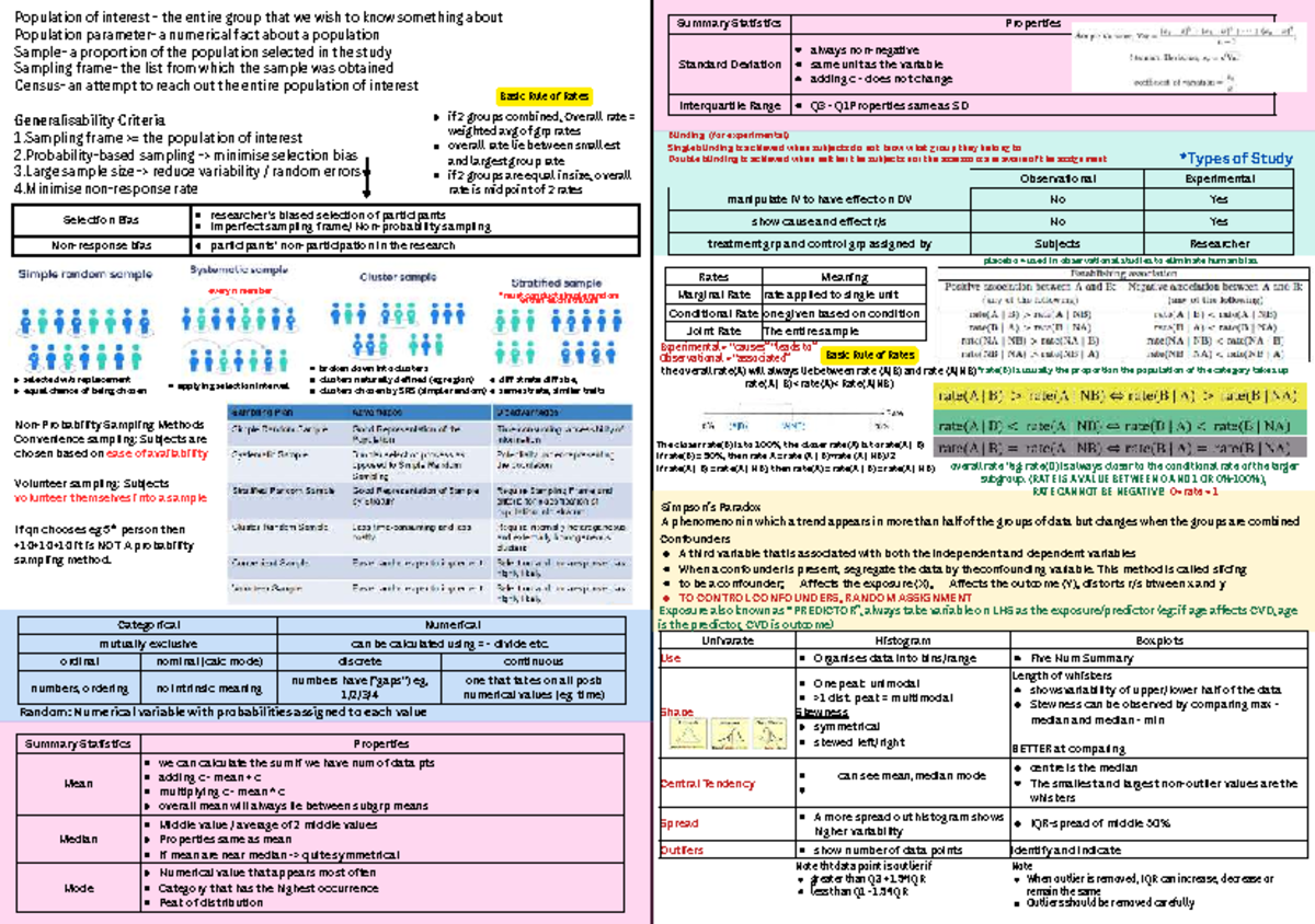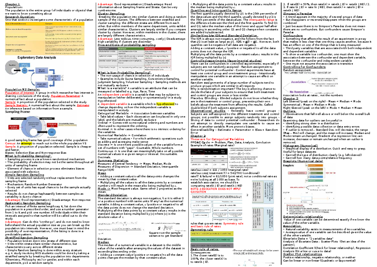 GEA1000 Cheatsheet: Key Concepts in Population Sampling and Statistics ...