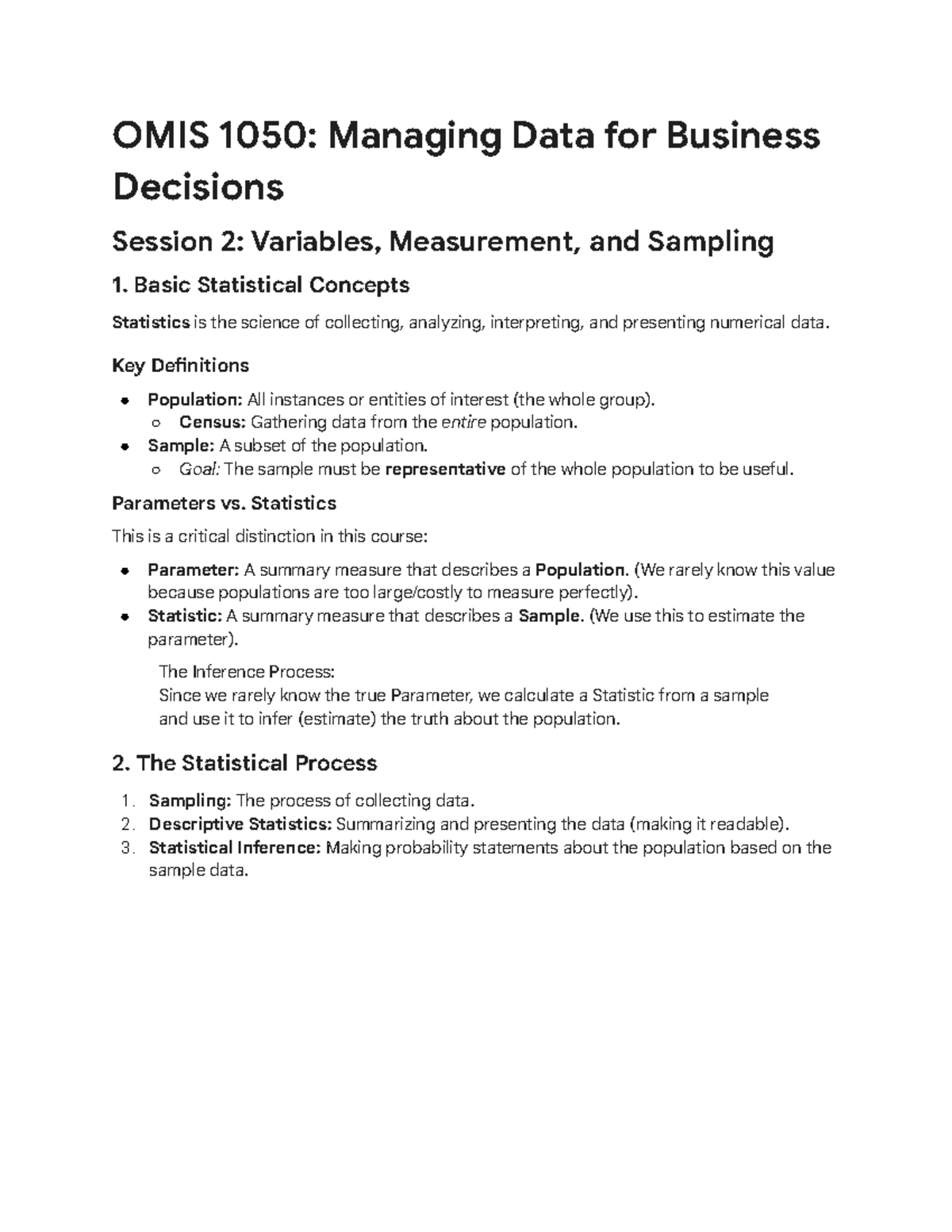 OMIS 1050: Lecture 2 Notes on Variables, Measurement, and Sampling ...