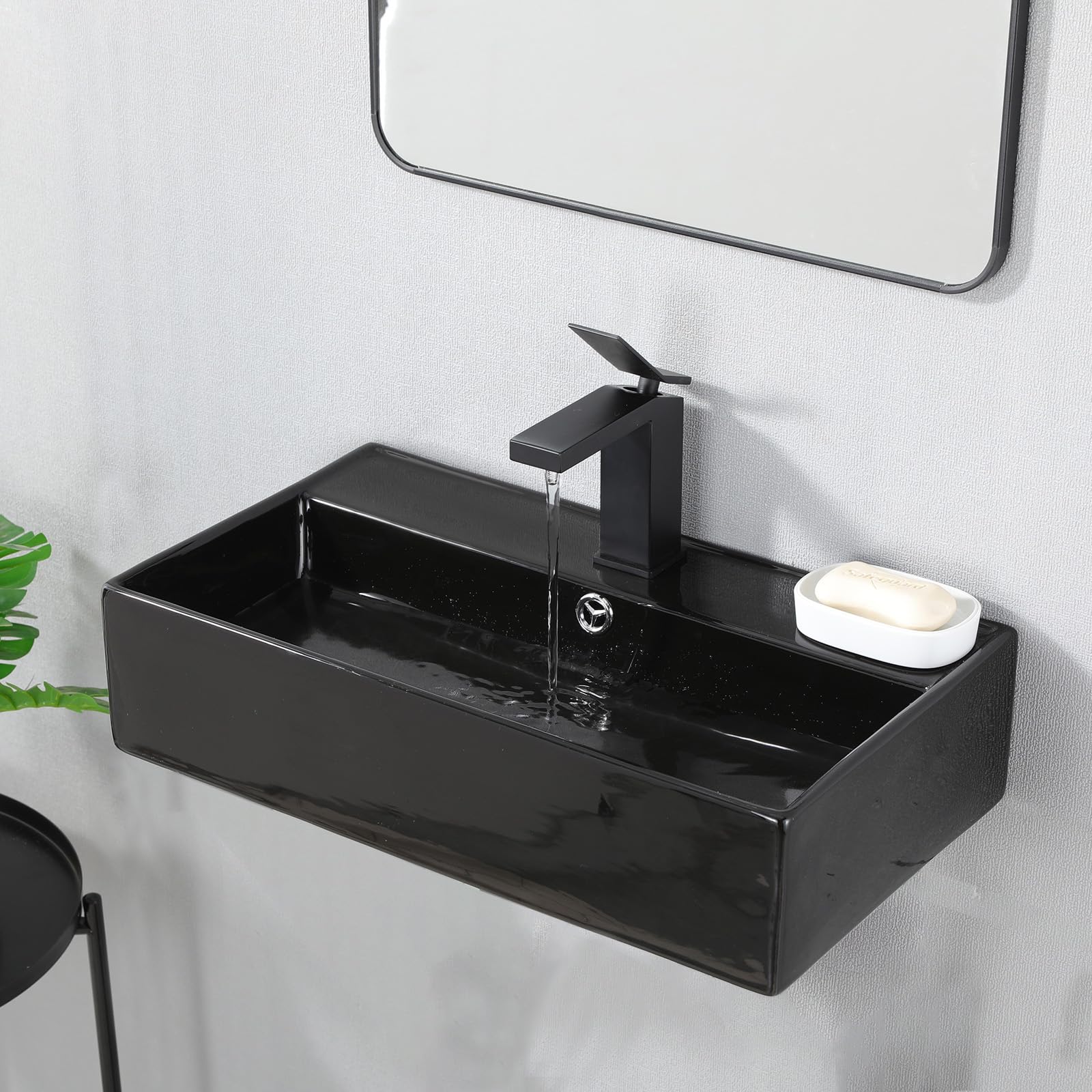 Snapklik.com : SHACO Black Wall Mount Bathroom Sink, Rectangular Wall ...