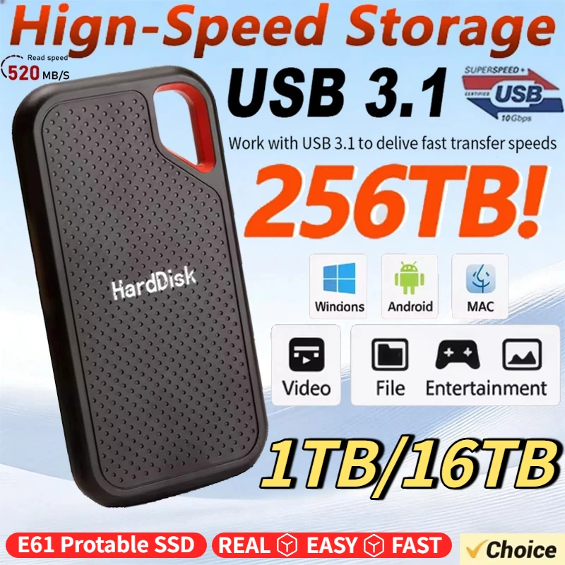 Real Portable SSD 256TB High Speed External Hard Drive 1TB Hard Disk ...