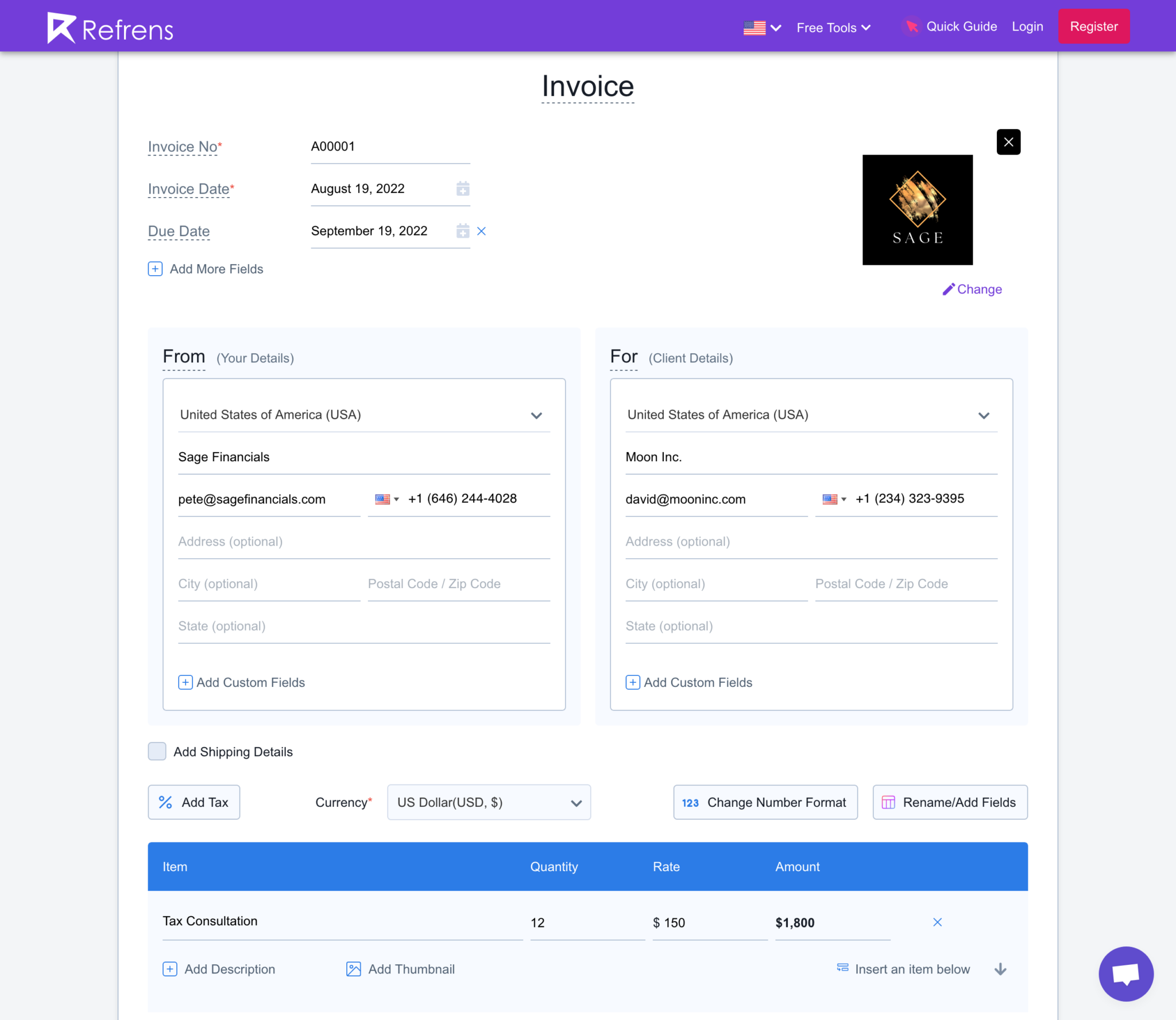 Free Invoice Generator | Online Invoice Maker - Refrens