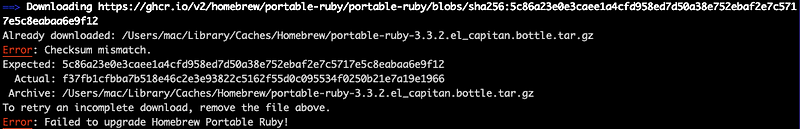 [Mac] Error: Failed to upgrade Homebrew Portable Ruby! — 과거의 나를 위해