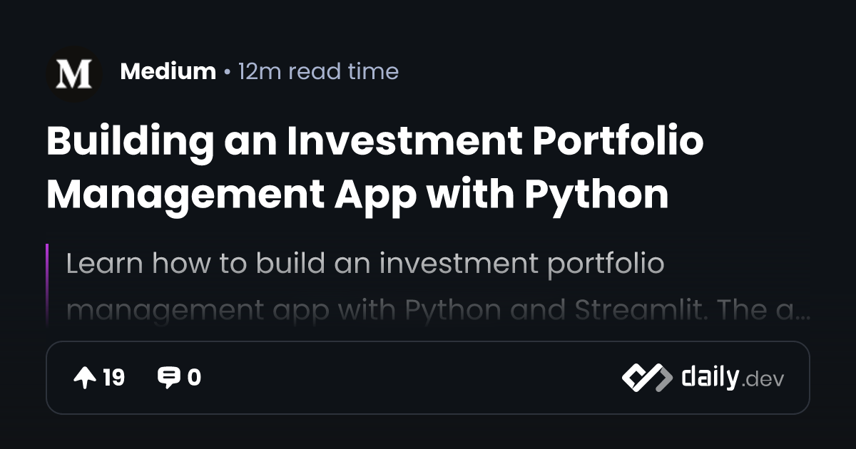 Building an Investment Portfolio Management App with Python | daily.dev