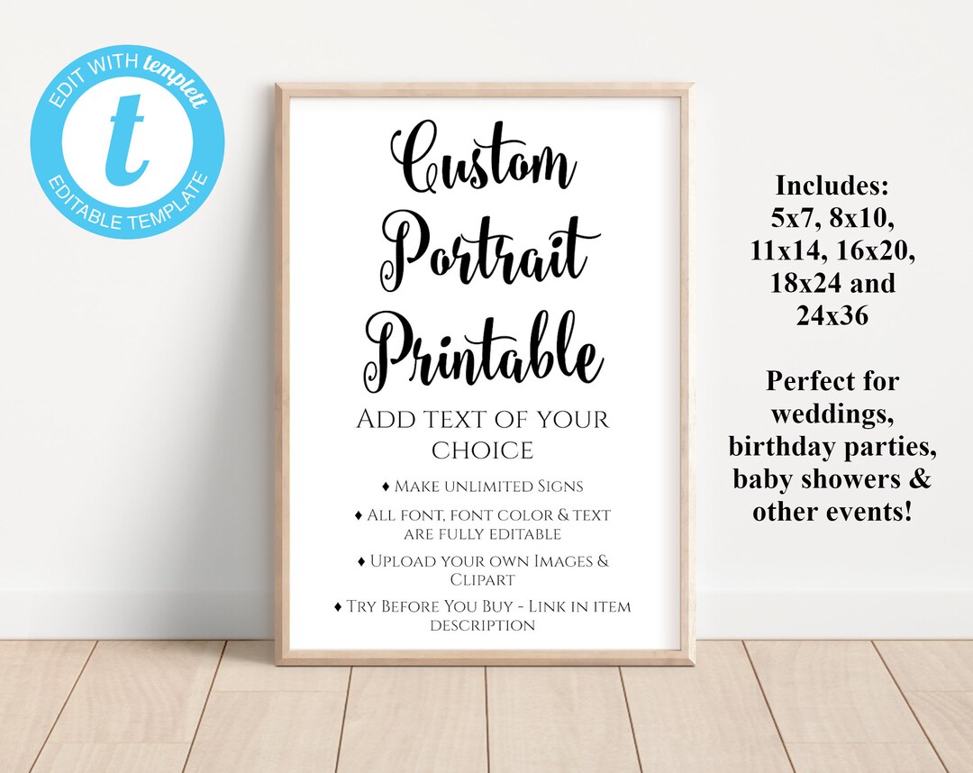 INSTANT DOWNLOAD Custom Editable Printable Portrait Sign / Vertical / 6 ...