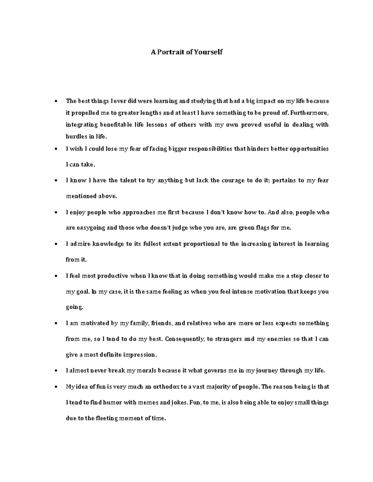 A Portrait of Yourself - essay on undself. - A Portrait of Yourself The ...