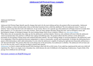 Adolescent Self-Portrait Essay Example | StudyHippo.com