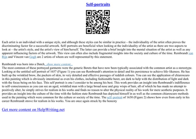 Self Portrait analysis Essay Example | Topics and Well Written Essays ...