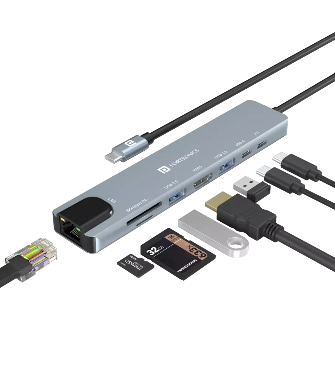 Portronics Mport 9C Type-C Multiport HDMI VGA RJ45 USB C SD/TF Port USB ...