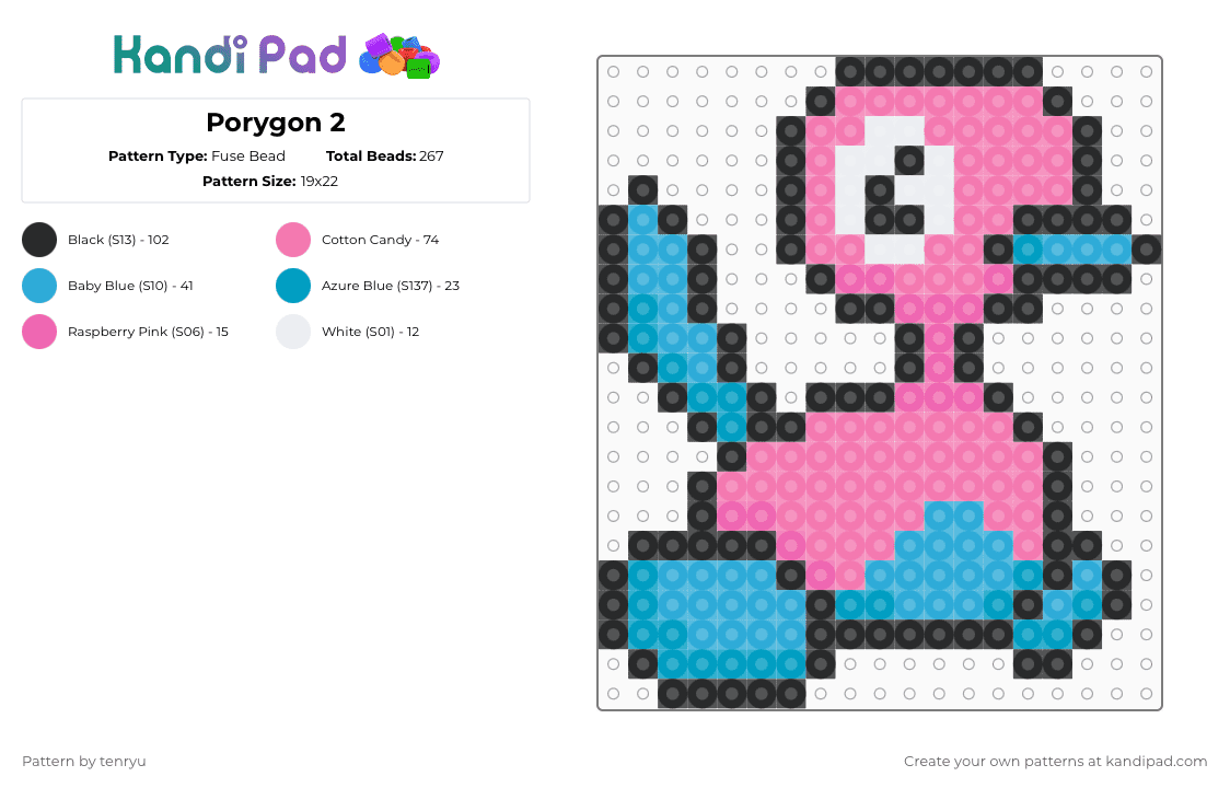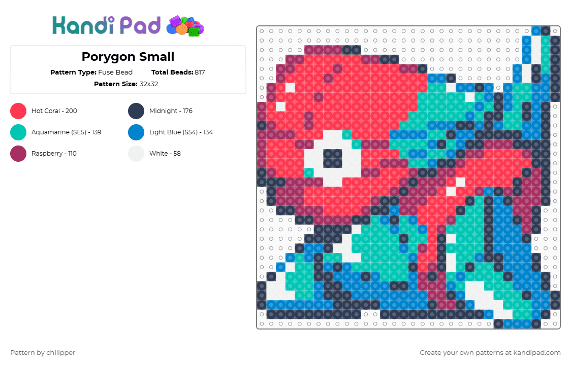 Chroma Porygon - Pokedex 1998 Fuse Bead Pattern - Kandi Pad | Kandi ...