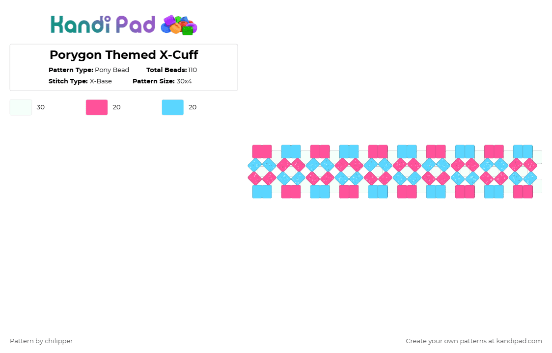 Porygon Themed X-Cuff Pony Bead Pattern - Kandi Pad | Kandi Patterns ...