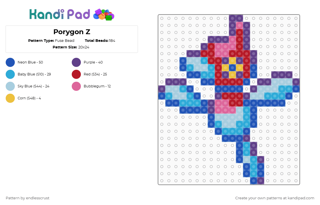 Shiny Porygon Z Fuse Bead Pattern - Kandi Pad | Kandi Patterns, Fuse ...