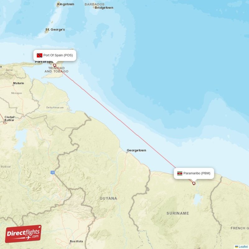 Direct flights from Paramaribo to Port Of Spain, PBM to POS non-stop ...