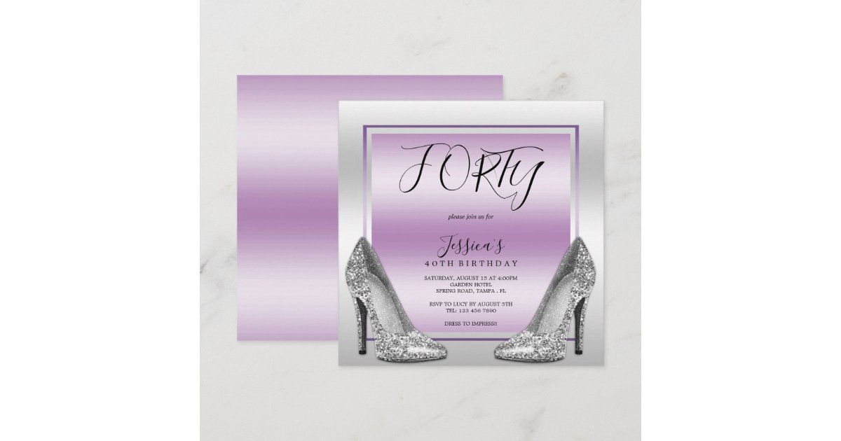 Posh Lilac & Silver Stilettos 40th Birthday Invitation | Zazzle