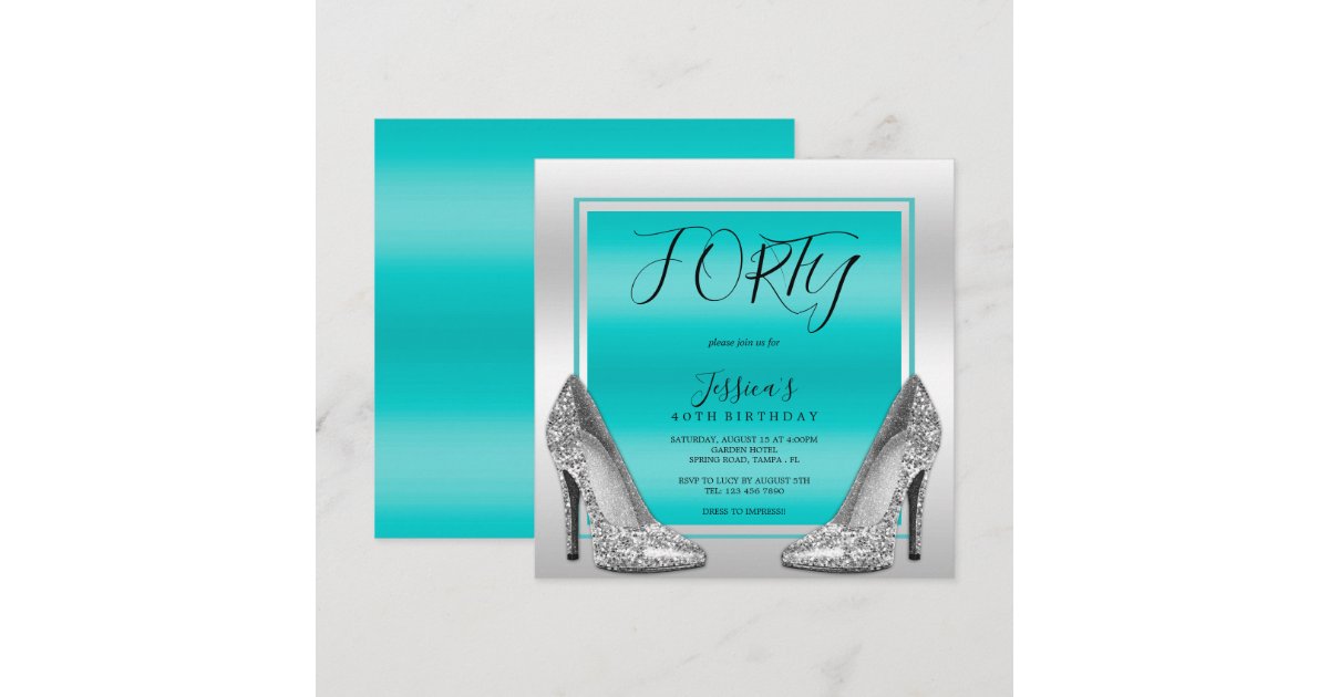 Posh Teal & Silver Stilettos 40th Birthday Invitation | Zazzle