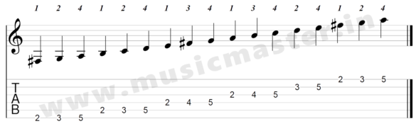 G major scale (1st position - Ionian) - A fingering diagram made with ...