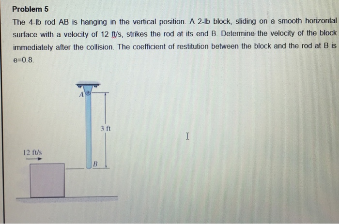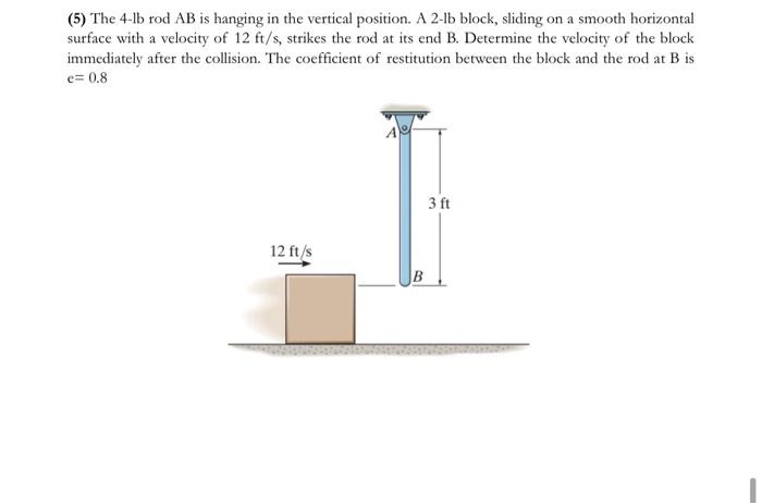 Solved (5) The 4-lb rod AB is hanging in the vertical | Chegg.com
