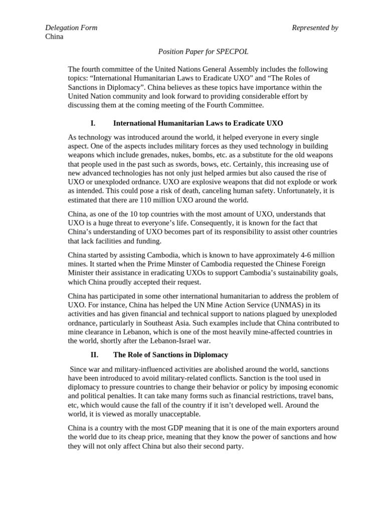 Sample Position Paper | PDF | United Nations | International Relations