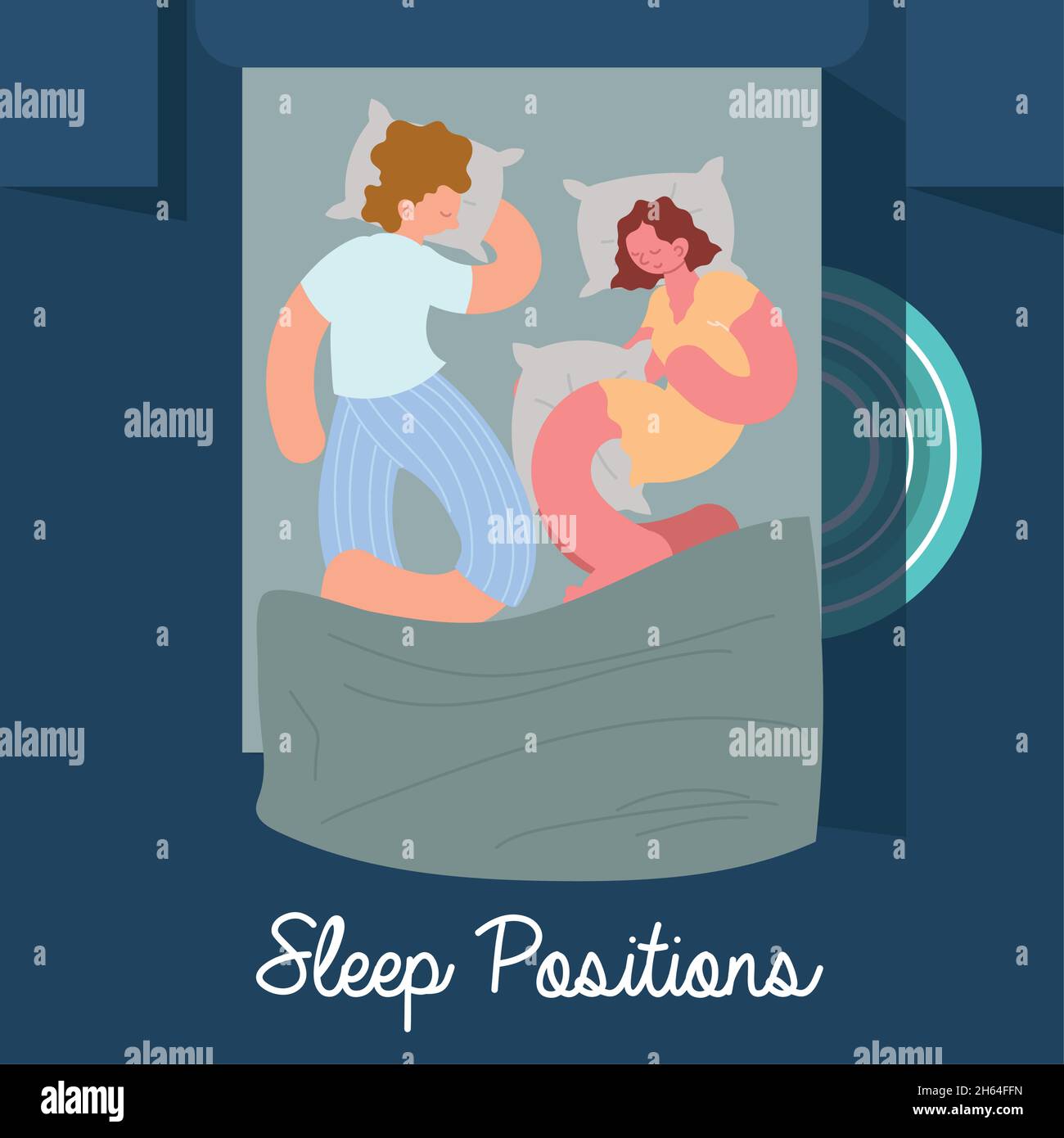 Various poses of a sleeping woman. Female side sleeper fetal position ...