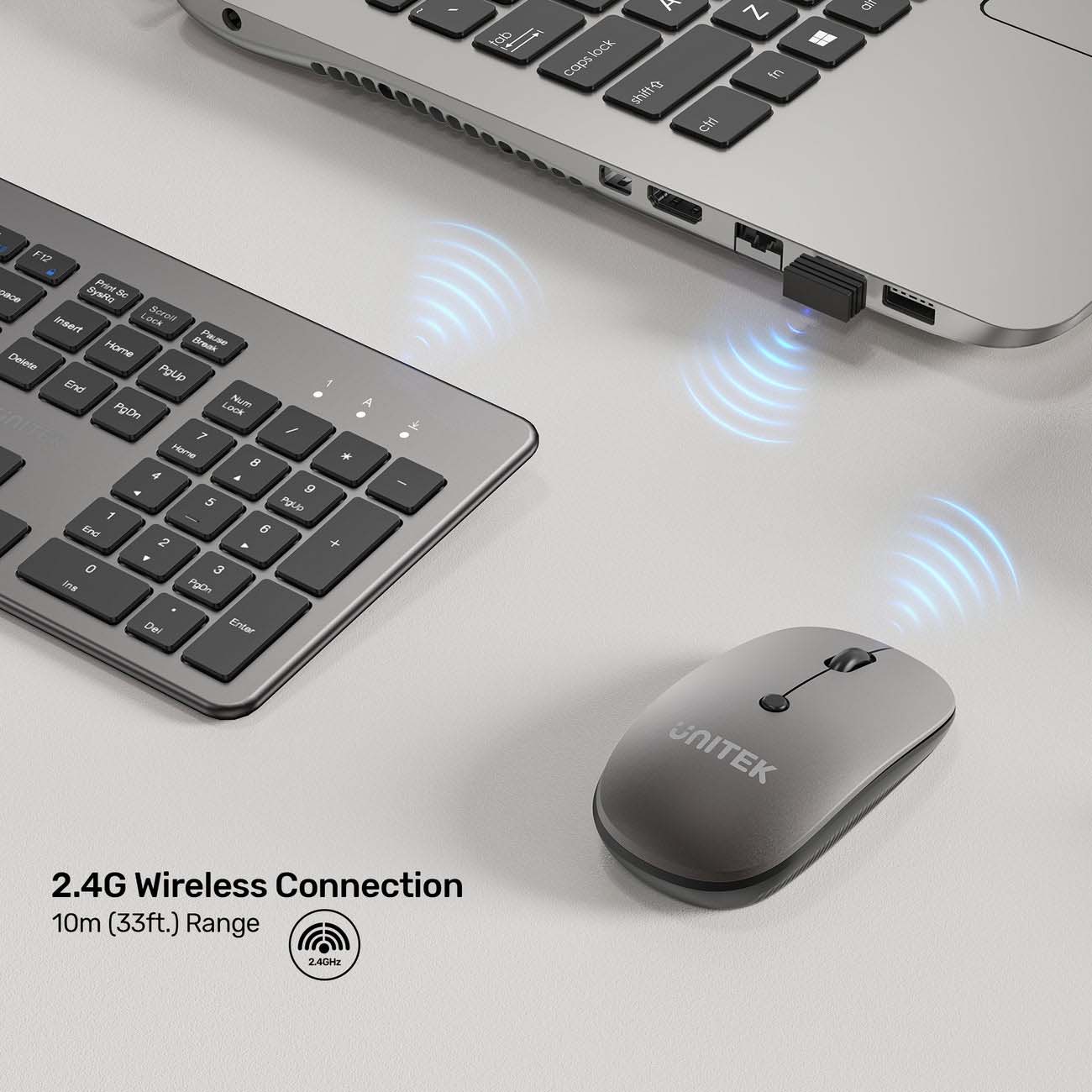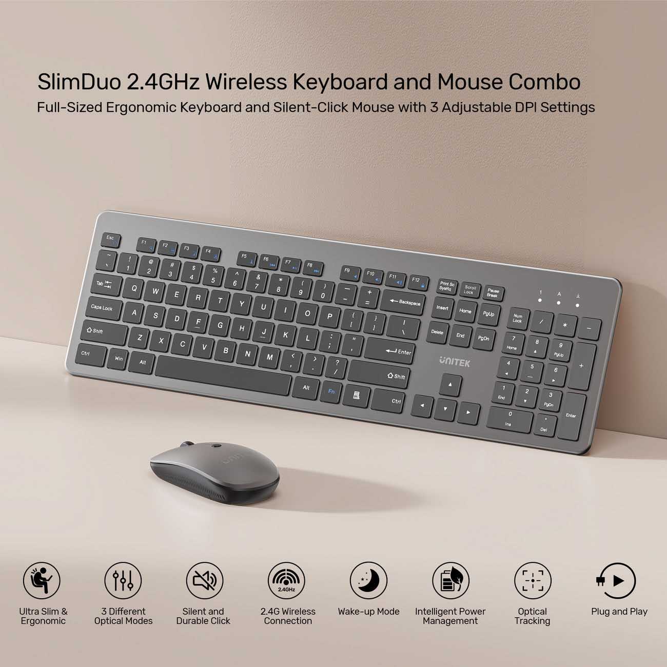 Unitek Wireless Keyboard & Mouse / Adjustable 1600 DPI Sensor / Quiet ...
