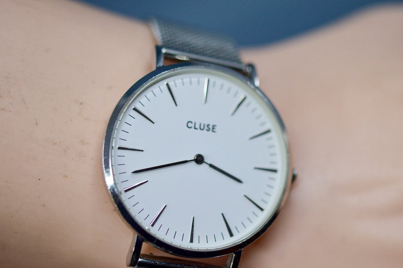 Cluse, Steel Tone With White Dial, Mesh Adjustable Bracelet, Quartz ...