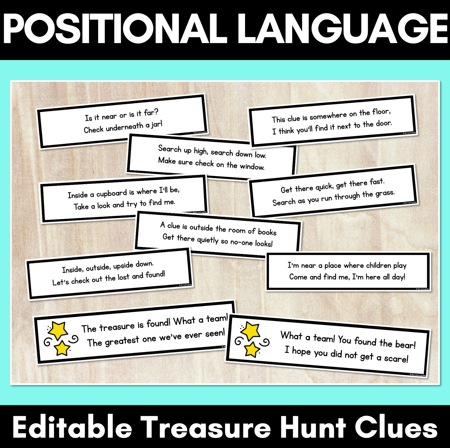 Positional Language - Editable Treasure Hunt Clues with Position Words