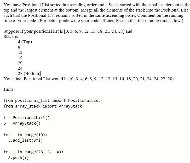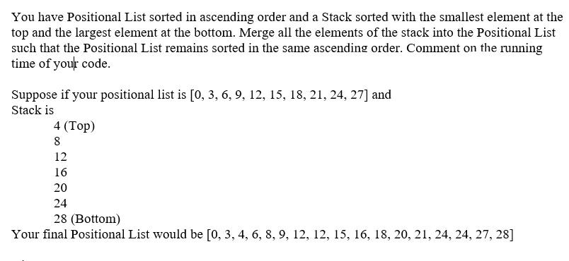 Solved You have Positional List sorted in ascending order | Chegg.com