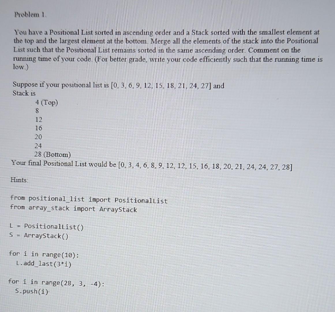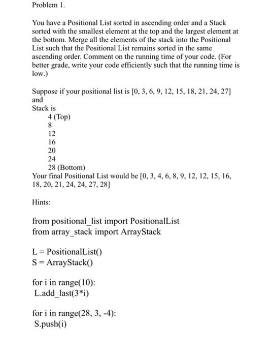 Solved Problem 1. You have a positional List sorted in | Chegg.com