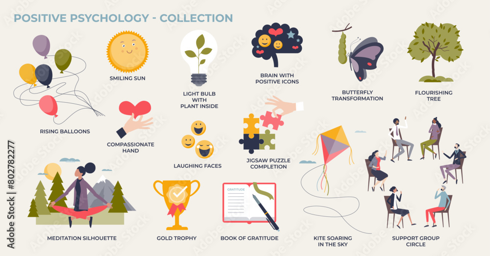 Positive psychology for happy attitude or behavior tiny person ...