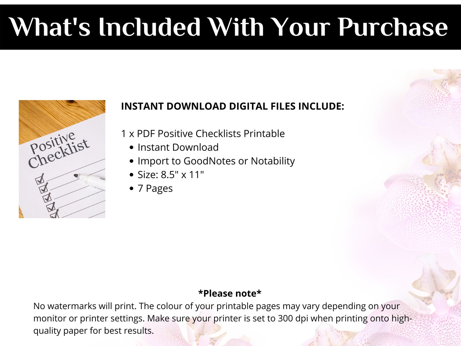 Positivity Checklist, Printable, Worksheet, Mental Health, Motivational ...