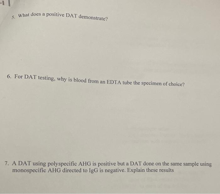 Solved 5. What does a positive DAT demonstrate? 6. For DAT | Chegg.com