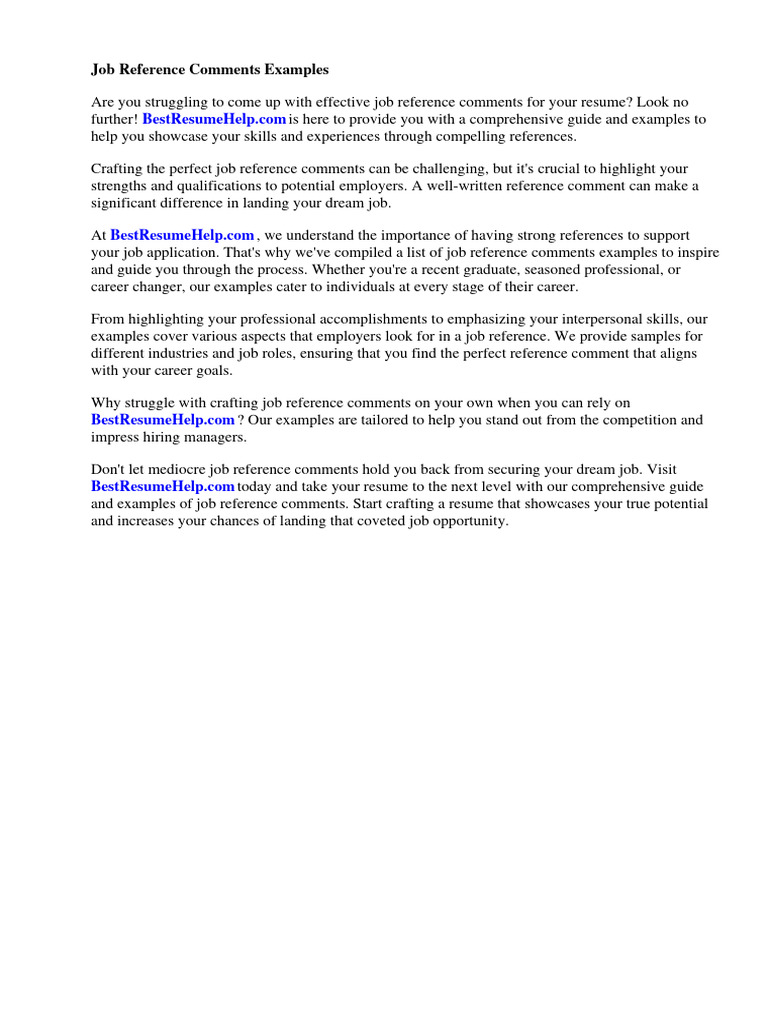Job Reference Comments Examples | Download Free PDF | Employment | Résumé