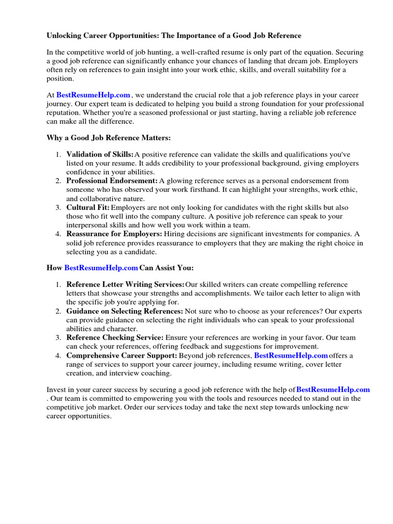 Job Reference Examples to Download