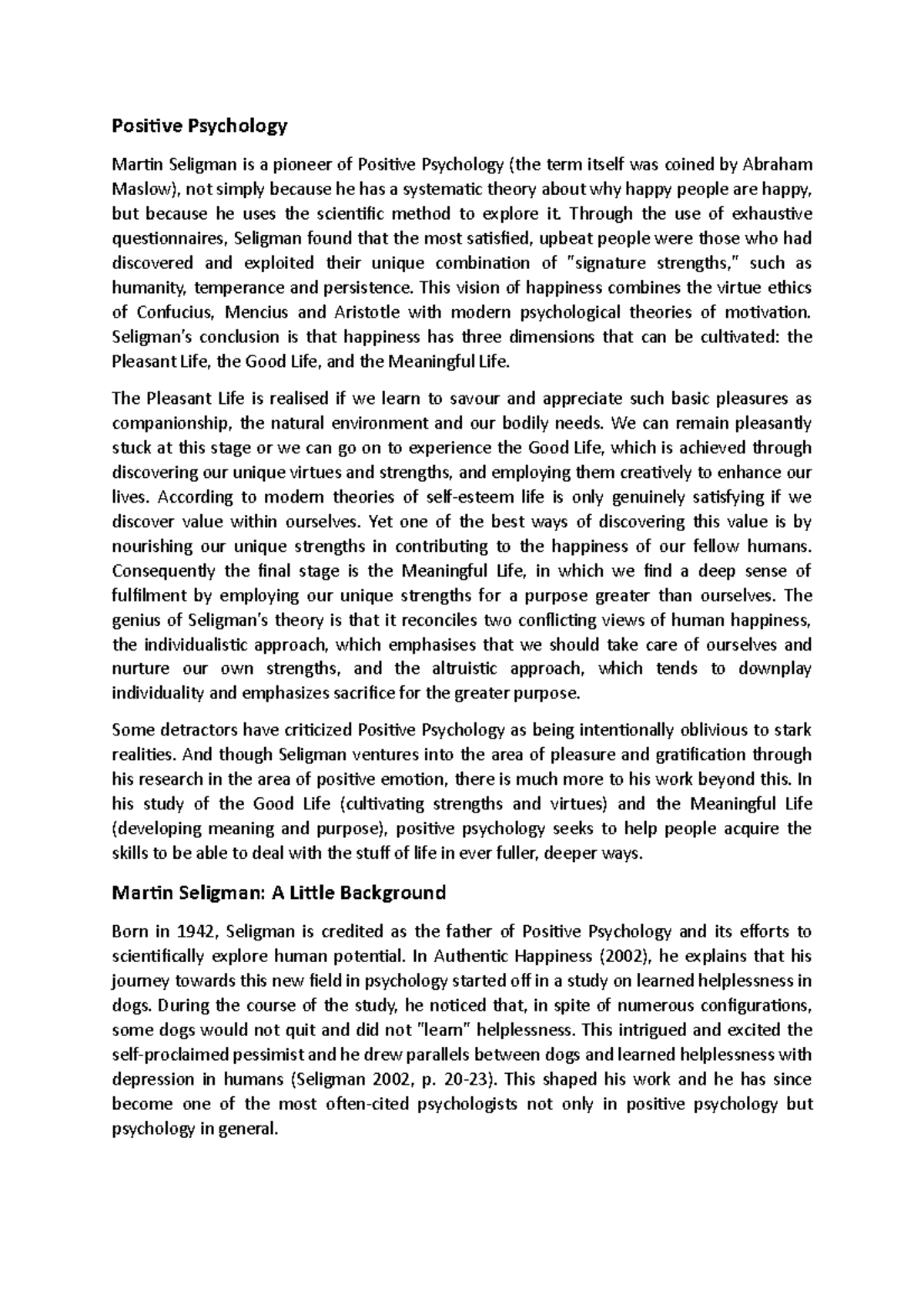 Positive Psychology - Through the use of exhaustive questionnaires ...