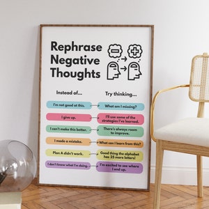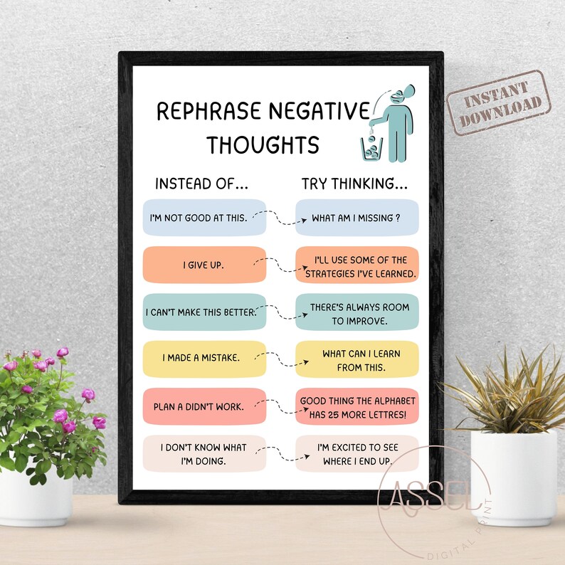 Negative Thoughts Poster, Rephrase Negative Thoughts, Negative Thinking ...