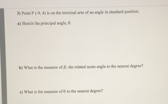 Solved: Point P(-9,4) is on the terminal arm of an angle in standard ...