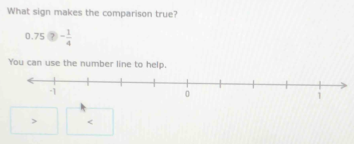 Solved: What sign makes the comparison true? 0.75 ? - 1/4 You can use ...