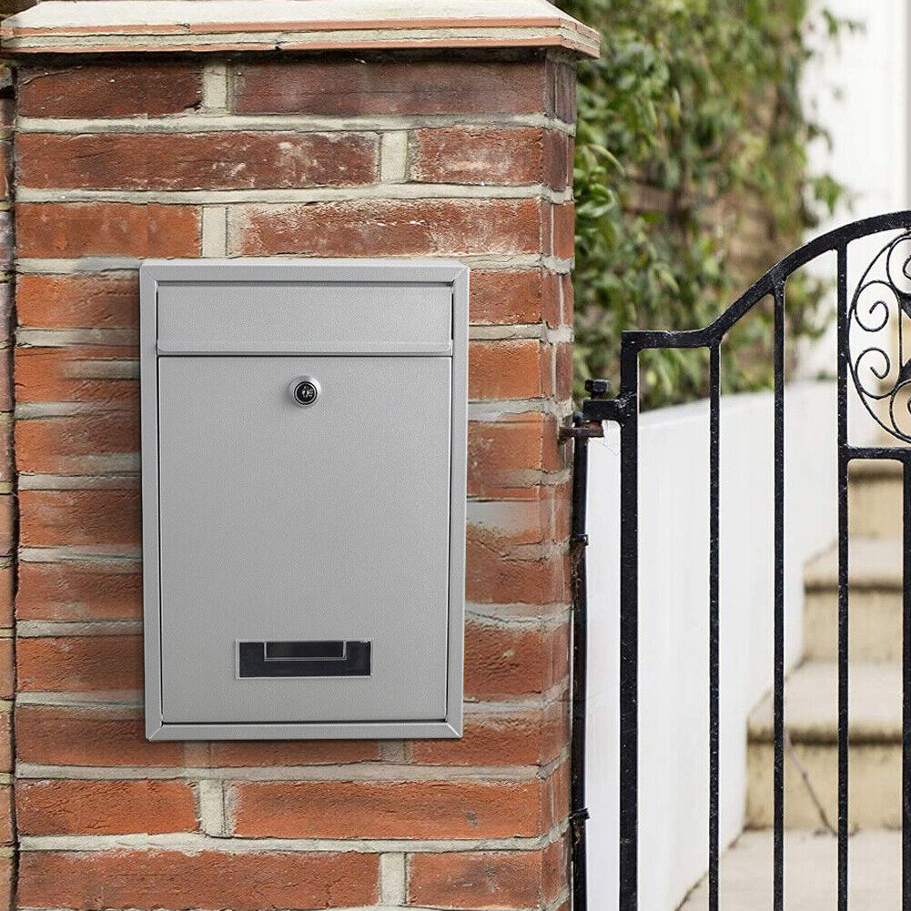 Outdoor Lockable Wall Mounted Mailbox Metal Mail Letter Post Secure Bo ...