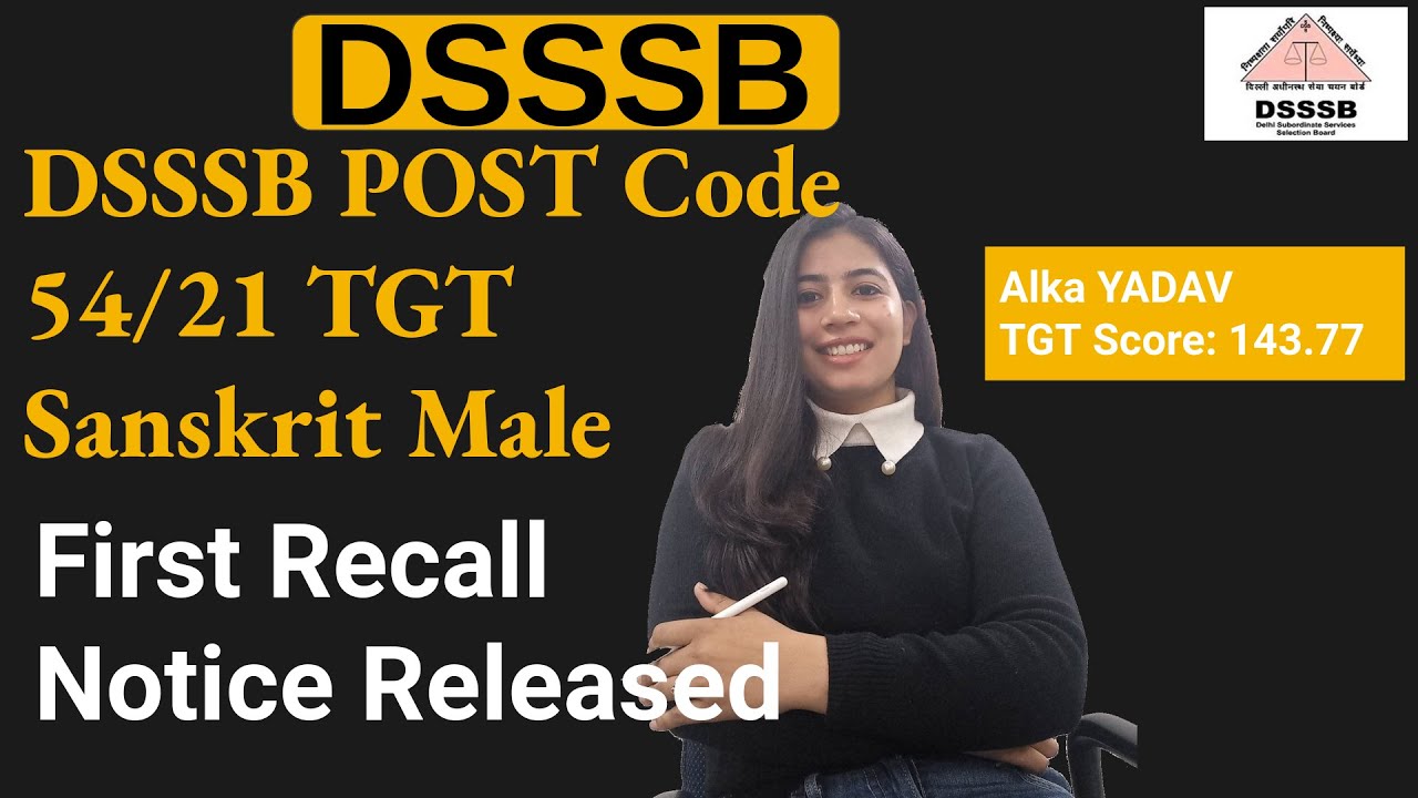 DSSSB TGT Sanskrit Male First Recall Notice| TGT POST Code 54/21 | TGT ...