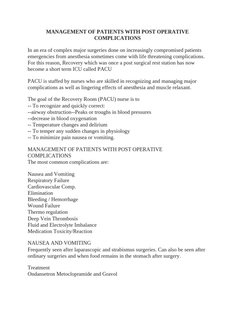 Management of Patient With Post Operative Complications 2 | PDF ...
