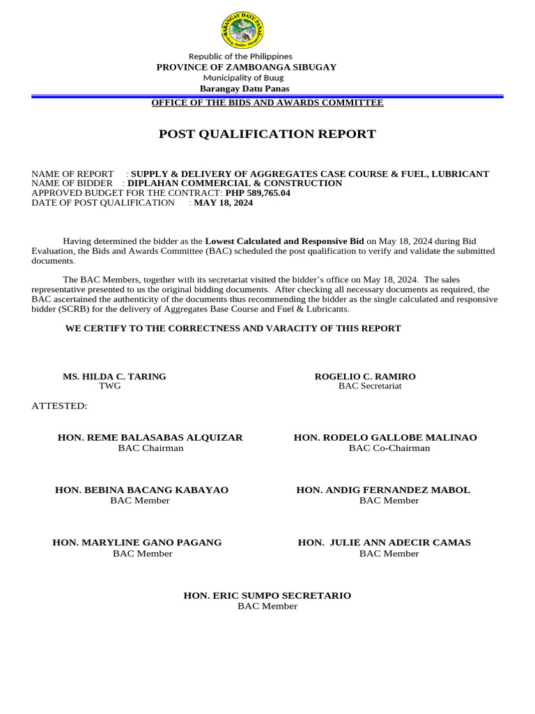 Post Qualification Report for Bidder | PDF | Notary Public | Government