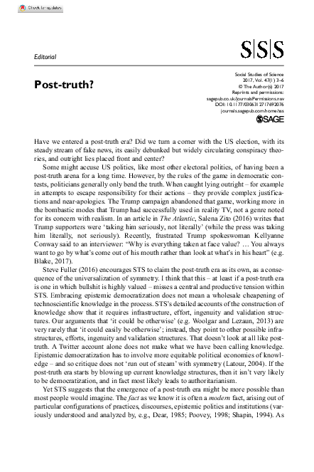 (PDF) Post-truth politics and the social sciences