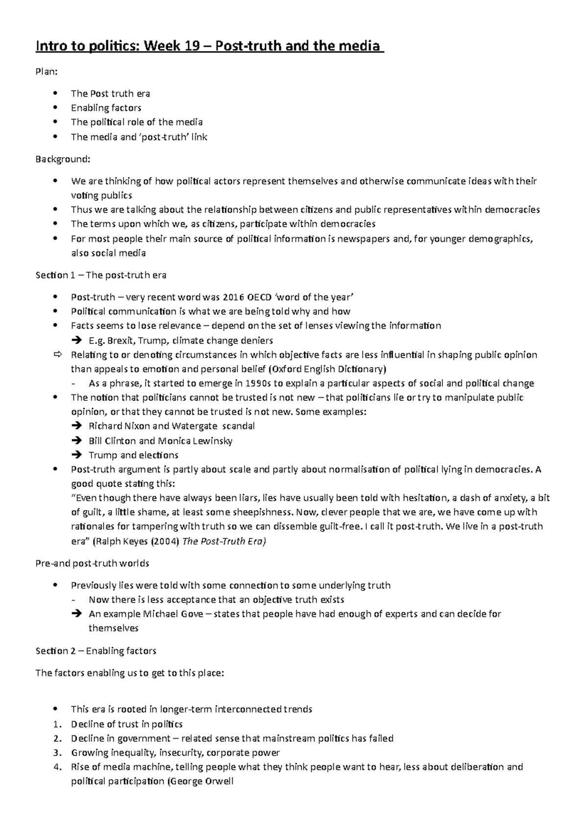 POST-TRUTH ERA AND THE MEDIA- introduction to politics - LECTURE 17 ...