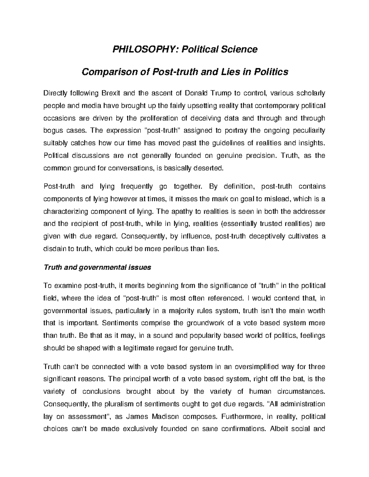Comparison of Post-truth and Lies in Politics - PHILOSOPHY: Political ...