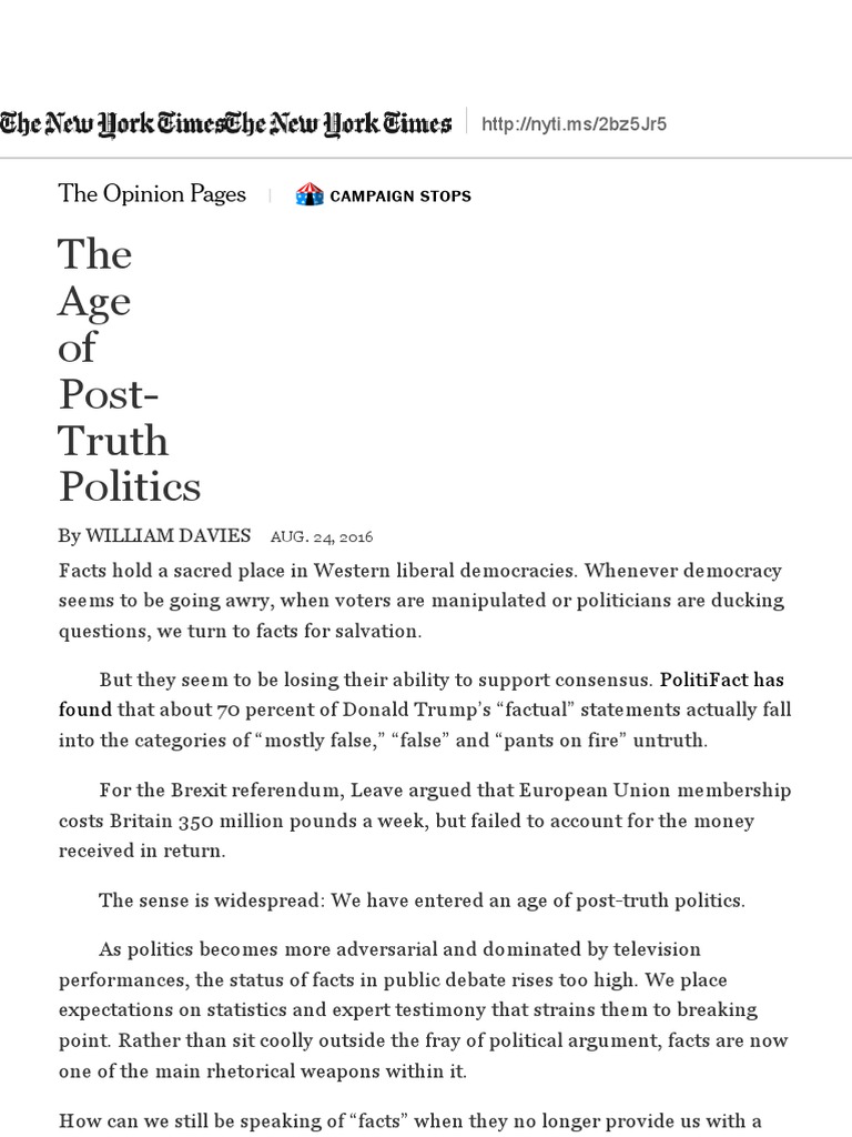 The Age of Post-Truth Politics - The New York Times | PDF | Opinion ...