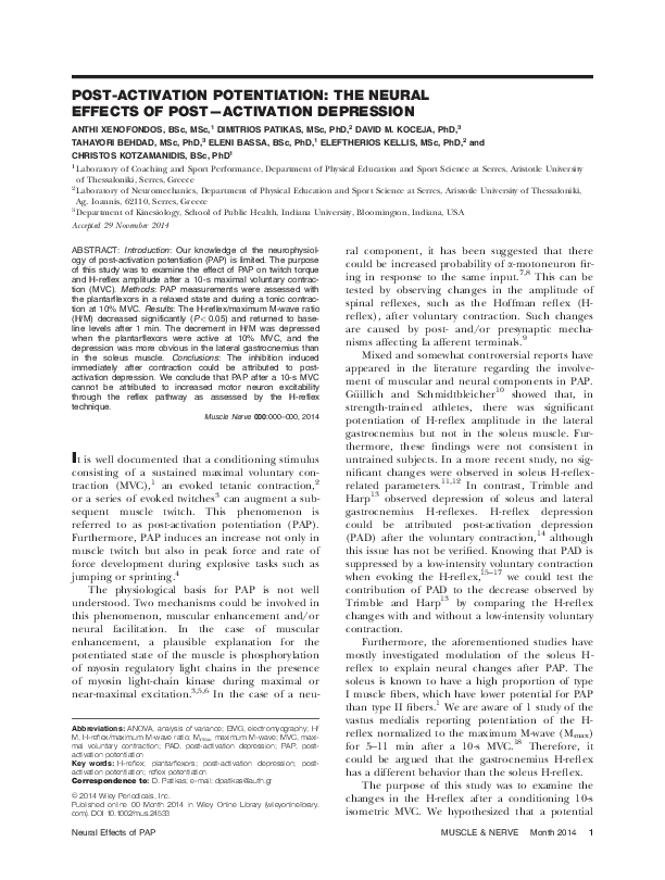 (PDF) Post-activation potentiation: The neural effects of post ...